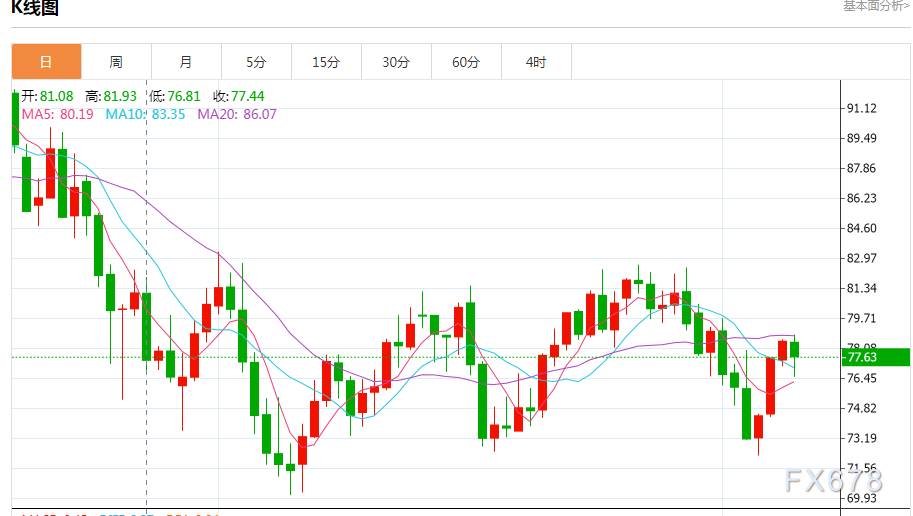 商品收盘情况:布伦特原油期货结算价报每桶84.50美元,下跌0.7%。美国原油期货结算价报每桶78.06美元,下跌0.5%。美国期金下跌0.7%,结算价报1878.50美元。