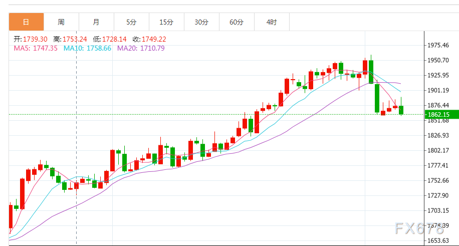 金价周四下跌,投资者准备迎接美联储进一步加息,目前关注点转向下周的美国通胀数据,这可能成为影响联储货币政策计划考量的一个重要因素。现货金下跌0.5%,至每盎司1865.60美元,在美国失业金数据公布后,一度高见1890.18美元。