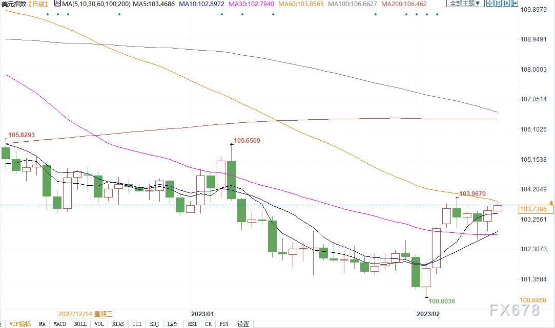 北京时间2月13日11:27,美元指数报103.74