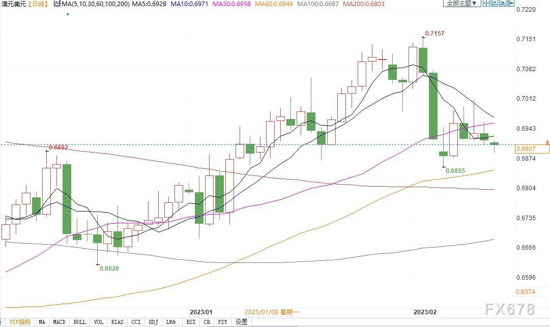 北京时间2月13日10:07,澳元兑美元报0.6909/10
