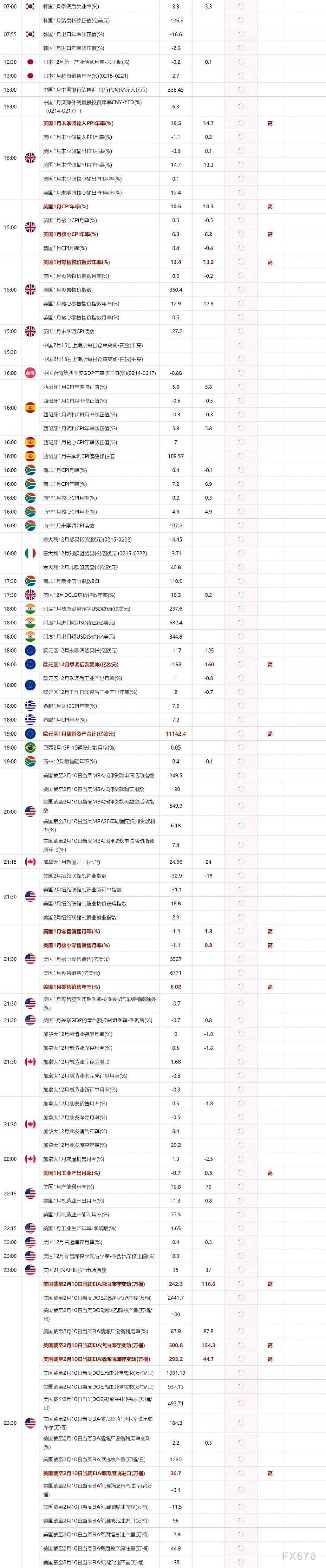 2月15日重点数据和大事件前瞻