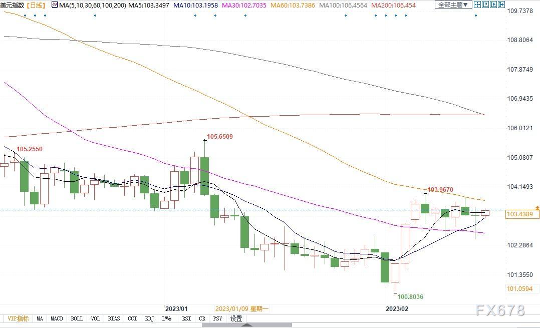 北京时间2月15日14:00,美元指数报103.44
