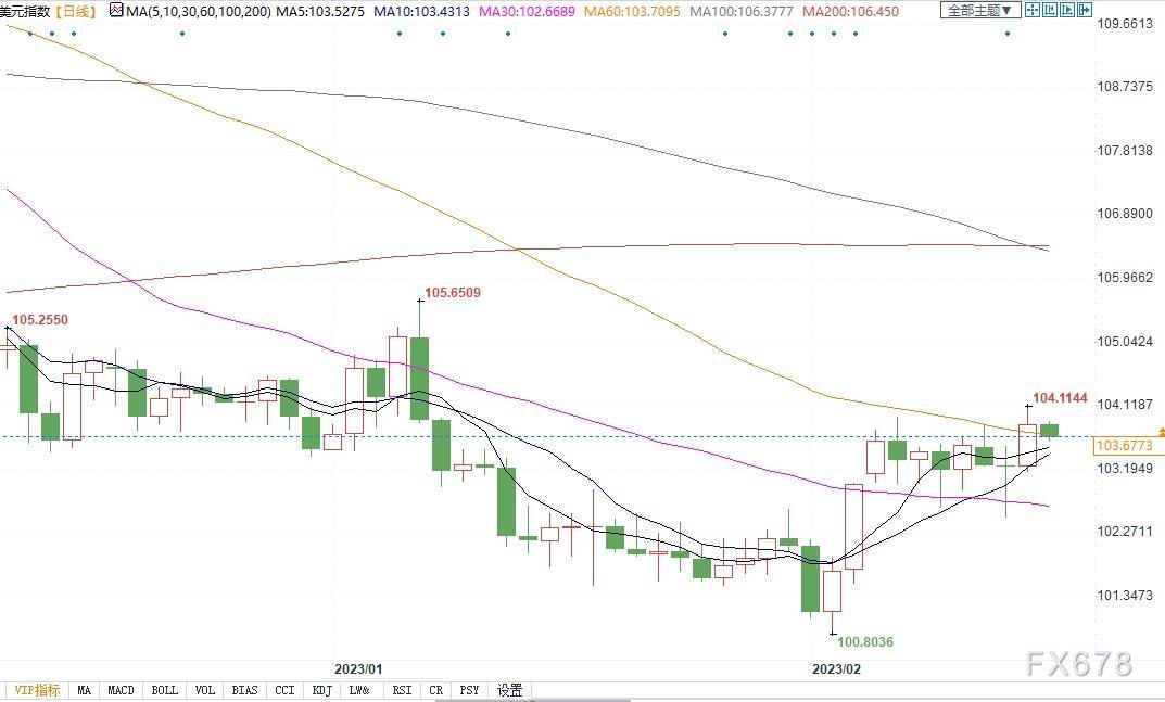 北京时间2月16日13:10,美元指数报103.68