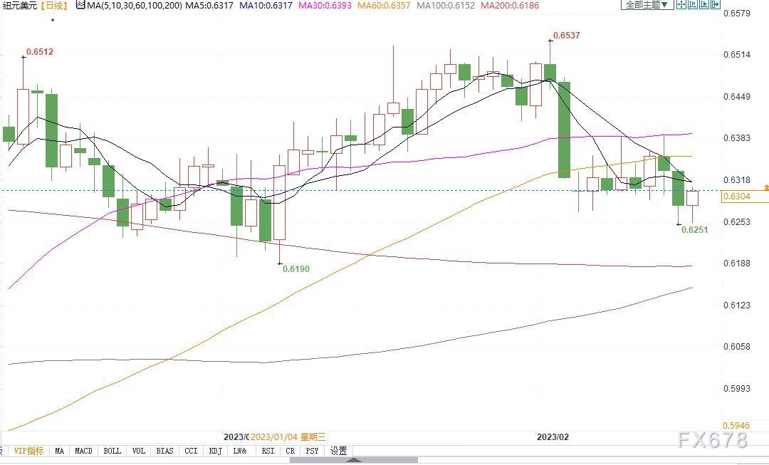 北京时间2月16日13:52,纽元兑美元报0.6303/05