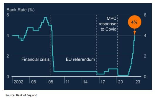 图:英国央行货币政策委员会去年加息近400个基点