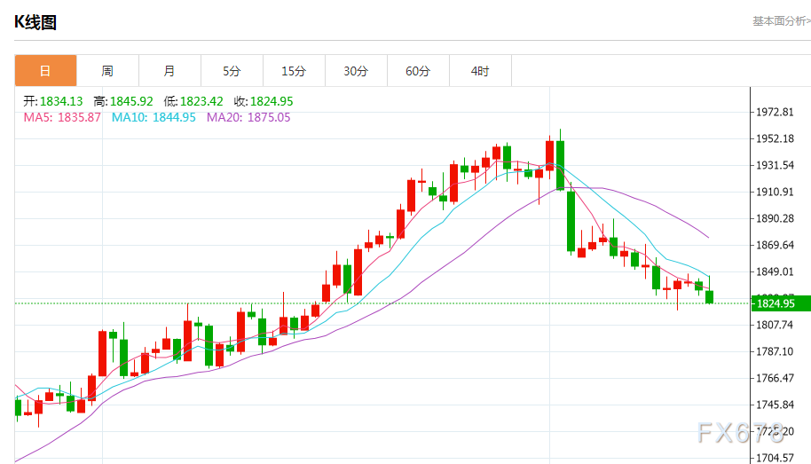在其他贵金属中,现货白银下跌1.6%至每盎司21.48美元,铂金上涨0.4%至946.44美元。钯金下跌2.6%至每盎司1486.72美元。