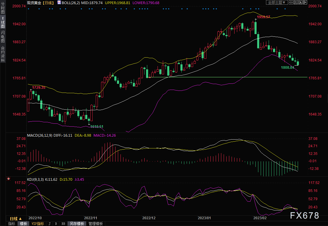 金价上周五延续跌势,现货一度创八周新低至1808.84美元/盎司,收报1810.96美元/盎司,受累于美元和美债收益率攀升,市场为美联储在未来几个月进一步加息做好了准备。