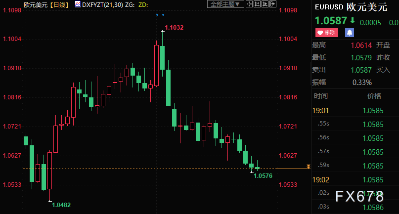 欧元兑美元下跌逾0.9%,创1月6日以来新低至1.0576。机构投资者维持悲观看法背后的原因可能是欧洲央行政策制定者在欧央行利率问题上持鹰派立场,且不惜经济衰退。