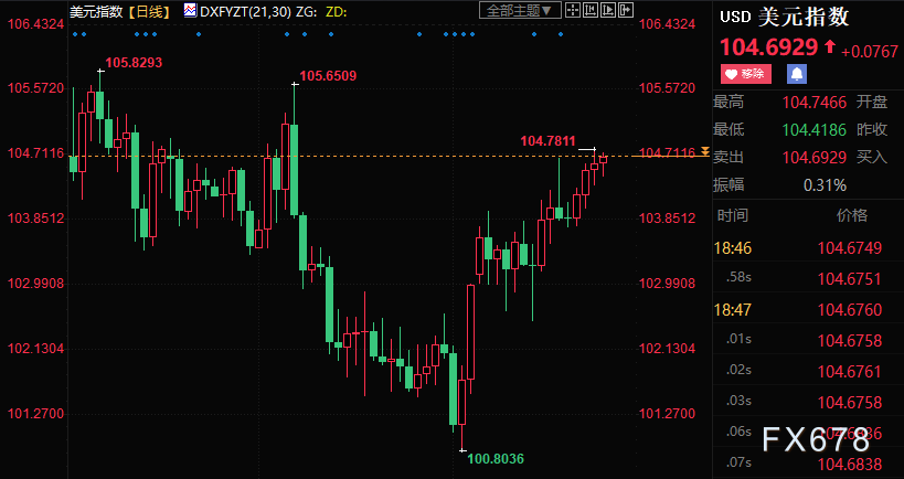 美联储本周公布上次会议纪要显示,多数决策者决心利用较慢的加息步伐来抑制持续的高通胀,并指出高通胀的风险仍是影响货币政策的一个“关键因素”。这种加息暗示以及一系列强劲经济数据推动美元指数连续第四周上涨,涨幅近0.8%,并创1月6日以来新高至104.781。