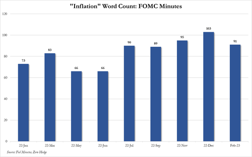 根据业内媒体的总结,在此份会议纪要中,“通胀”字眼出现的次数为91次,略低于去年11月和12月的95次和103次。