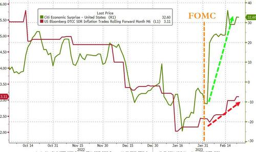 从近来一些颇受瞩目的市场指标看,无论是著名的花旗美国经济意外指数(衡量数据实际表现与预期的差值),还是业内的通胀预期指标,都正出现明显攀升的势头,这令越来越多的市场人士正开始相信,至少在今年上半年,美国经济将“不会着陆”!