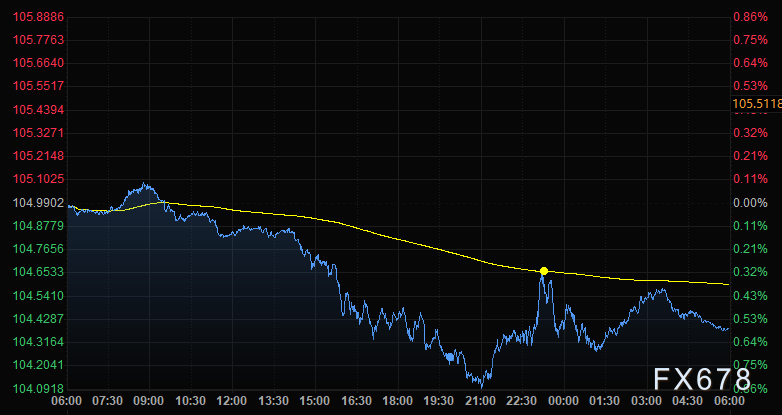美元指数周三下跌0.57%,至104.39。