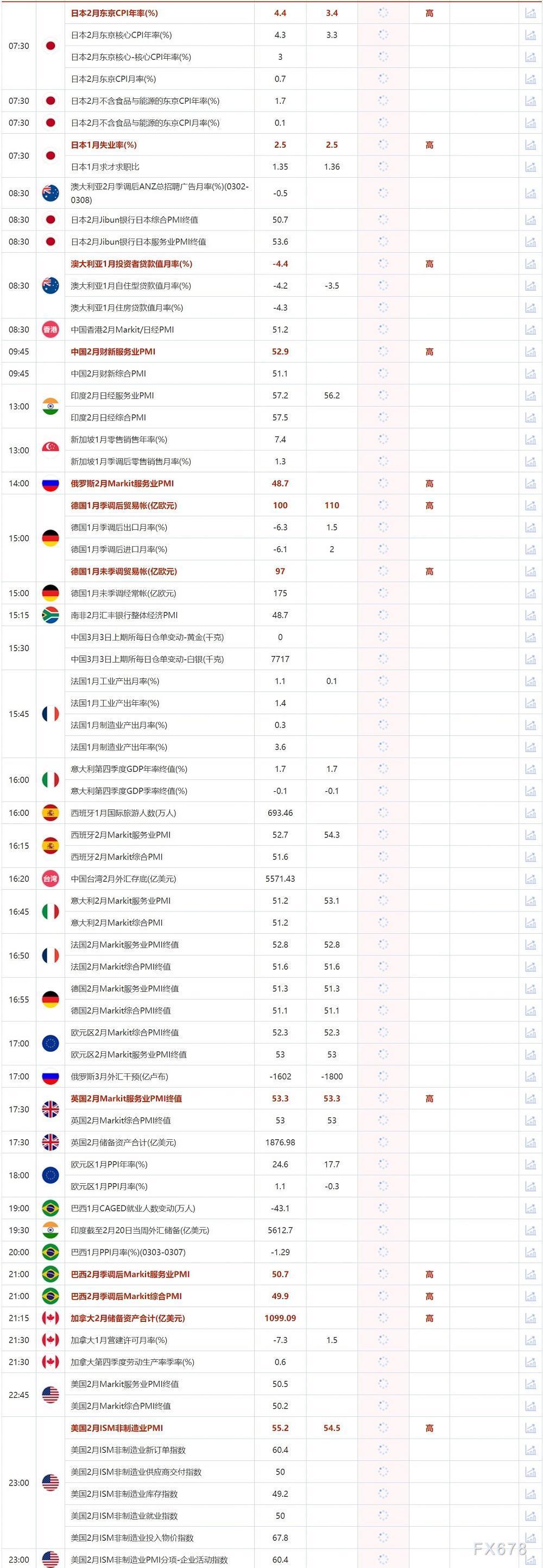 3月3日重点数据和大事件前瞻