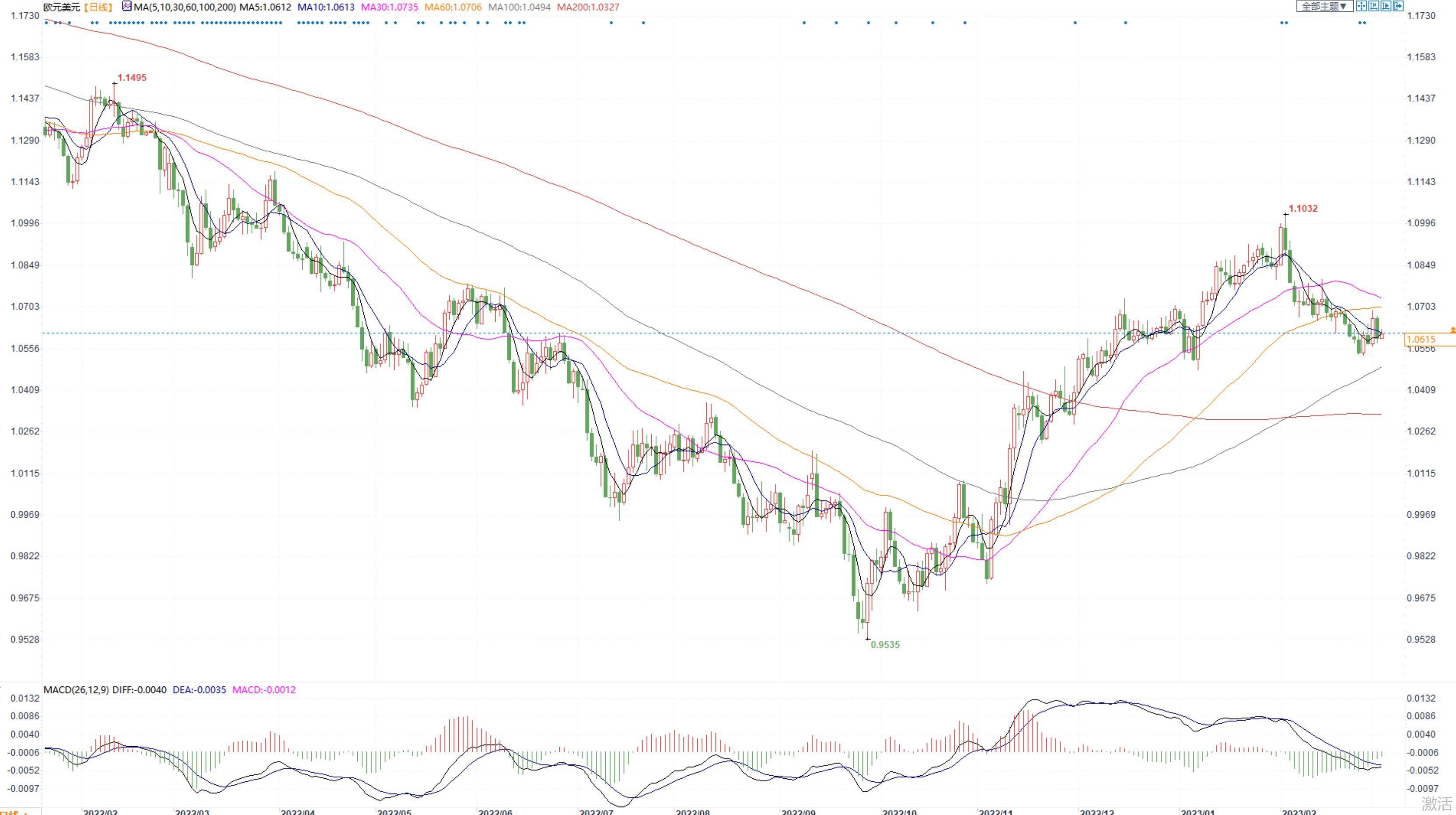 周五(3月3日)当周美元指数震荡回落,中国经济复苏,美国经济衰退升温施压美元,而美联储鹰派基调始终支持美元。