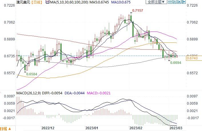 北京时间3月7日10:57,澳元兑美元报0.6742/43