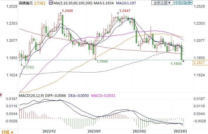 北京时间3月8日14:20 英镑兑美元 报 1.1826/27。