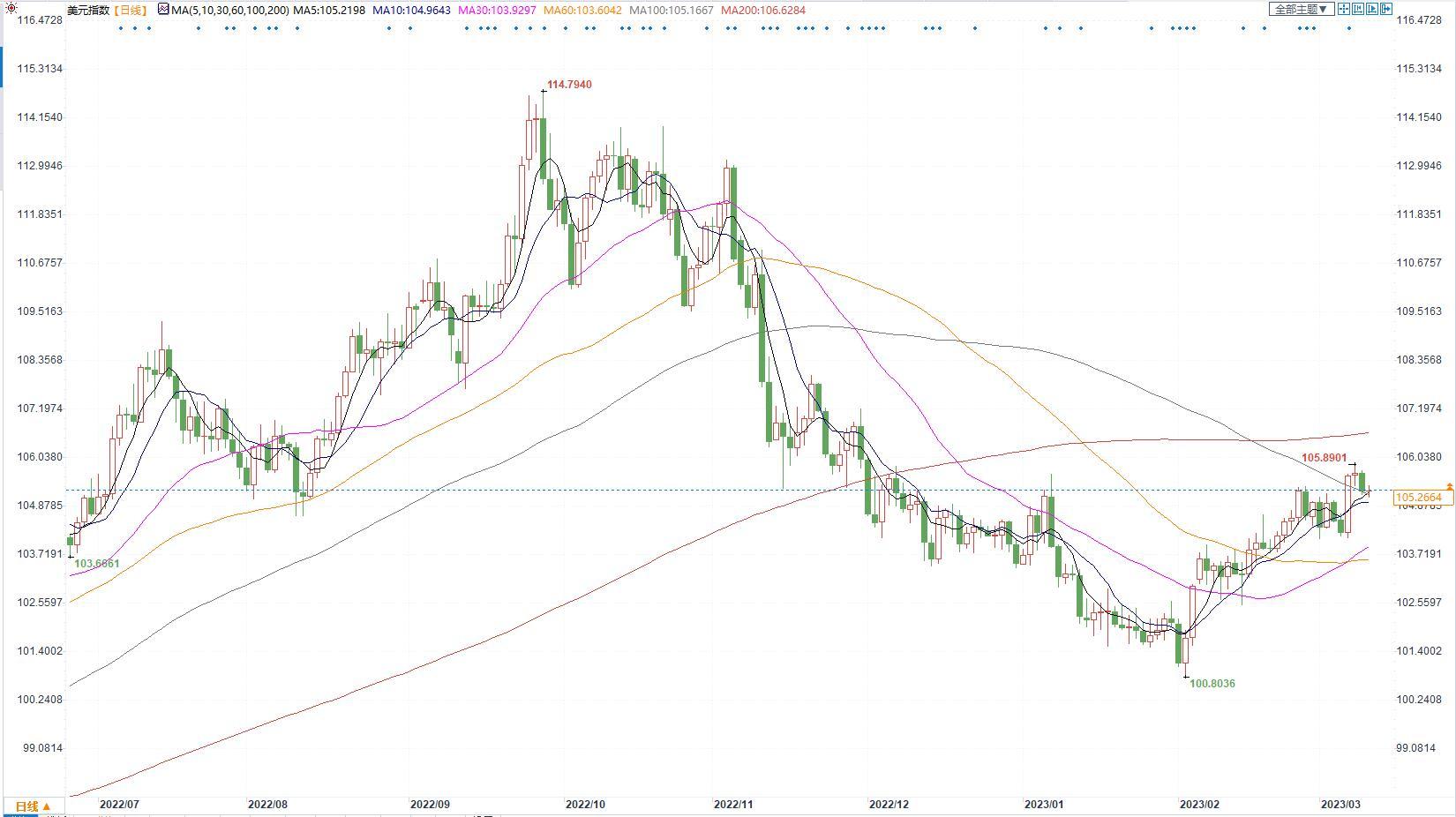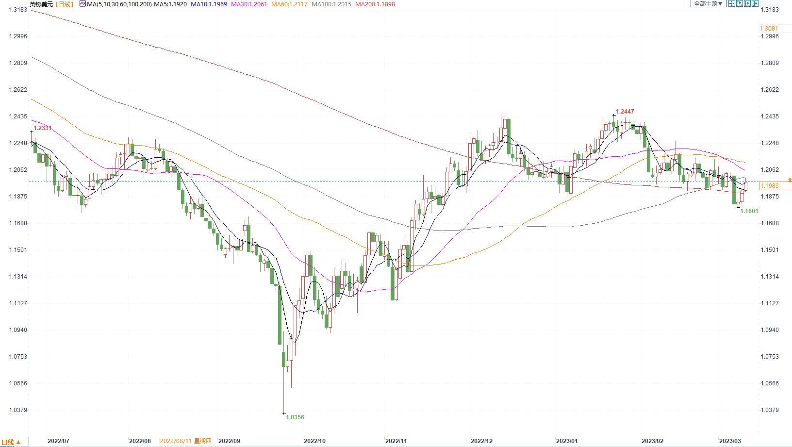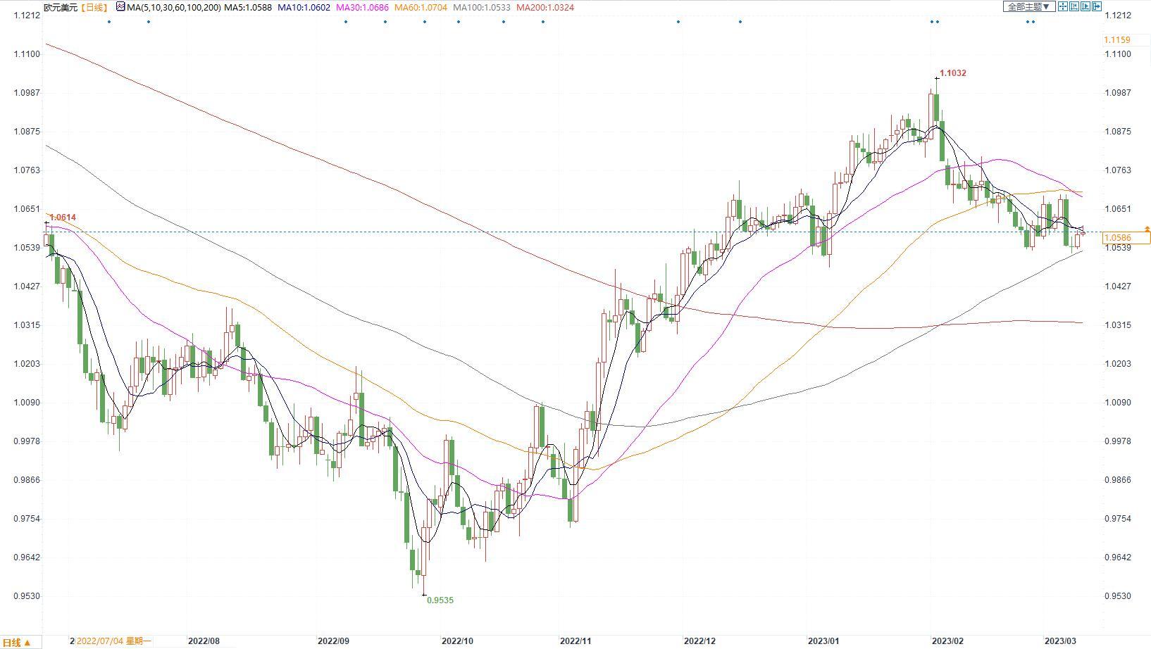 周五(3月10日)当周美元指数维持震荡整理。美联储主席鲍威尔在国会证词中释放鹰派基调,但美国经济数据整体表现不佳,美元维持整理的走势。其他非美方面,欧元兑美元本周维持震荡整理,欧洲央行加息预期依然支持欧元。英镑兑美元本周震荡整理,英国经济前景疲弱,不利于英镑。