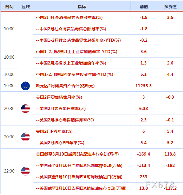 本交易日需要重点关注美国2月份零售销售月率,该数据俗称“恐怖数据”,投资者需要重点关注。