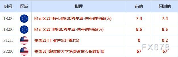 周五(3月17日)亚市盘初,美元指数窄幅震荡,目前交投于104.37附近。隔夜美元指数下跌约0.29%,欧元兑美元上涨约0.36%,周四下跌,因在瑞士央行向瑞士信贷抛出了540亿美元的救命资助后,欧洲央行在最近几天市场混乱的情况下仍按计划加息50个基点。