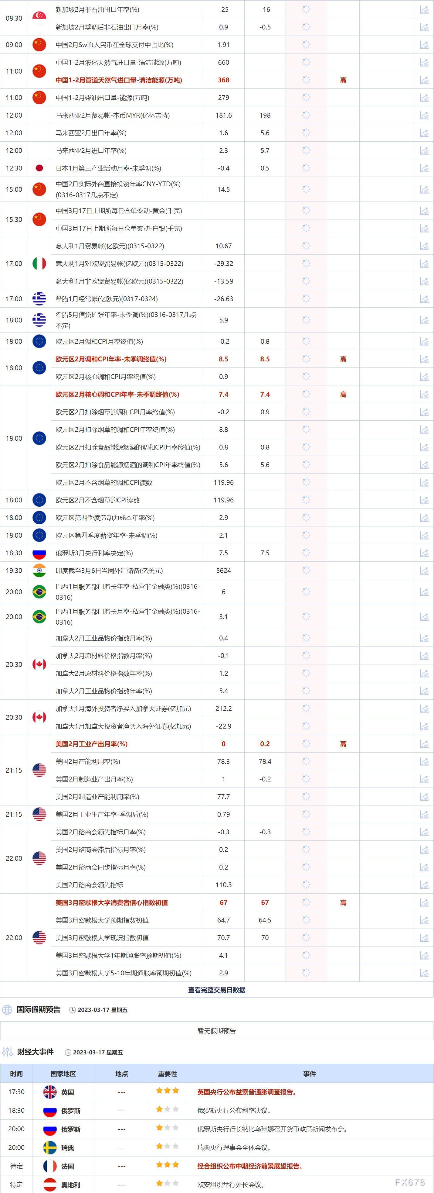 3月17日重点数据和大事件前瞻