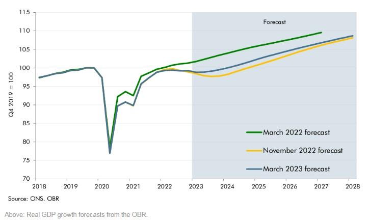 图:来自英国预算责任署(OBR)的实际GDP增长预测