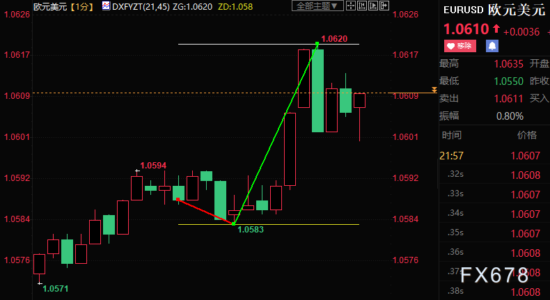 拉加德强调通胀压力并预计经济复苏,欧元短线上涨逾30点累计波动70点