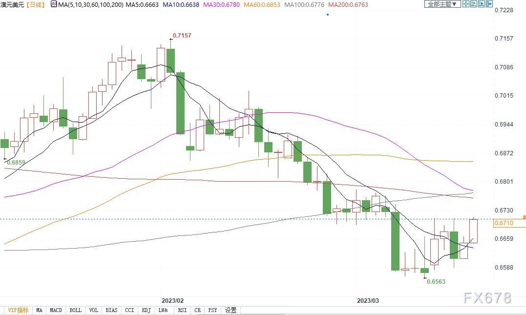 北京时间3月17日13:31,澳元兑美元0.6710/11