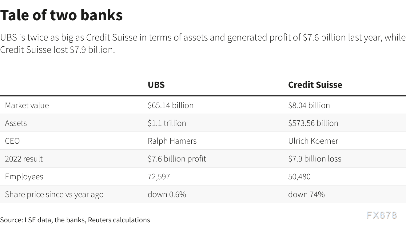 瑞银的资产规模是瑞士信贷的两倍,去年利润高达760万亿美元,而瑞士信贷亏损了79亿美元