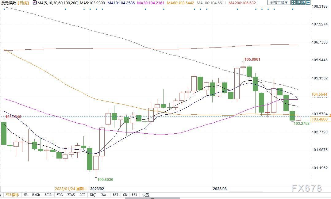 北京时间3月21日14:38,美元指数报103.49