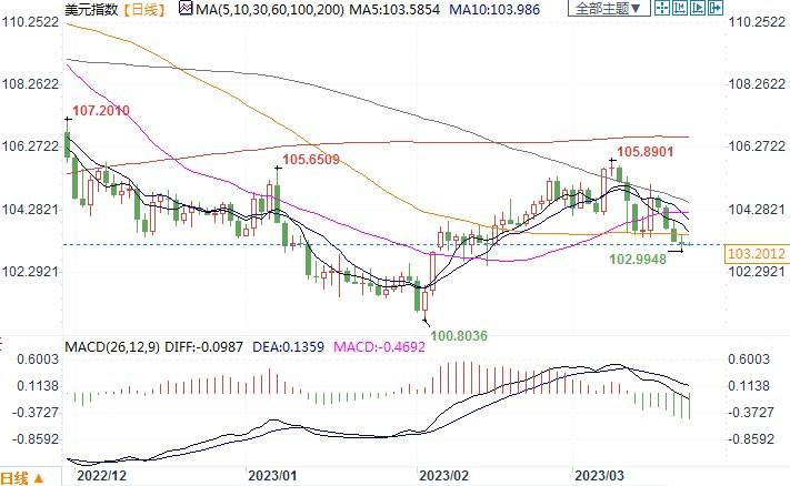 北京时间3月22日10:54,美元指数报103.2012
