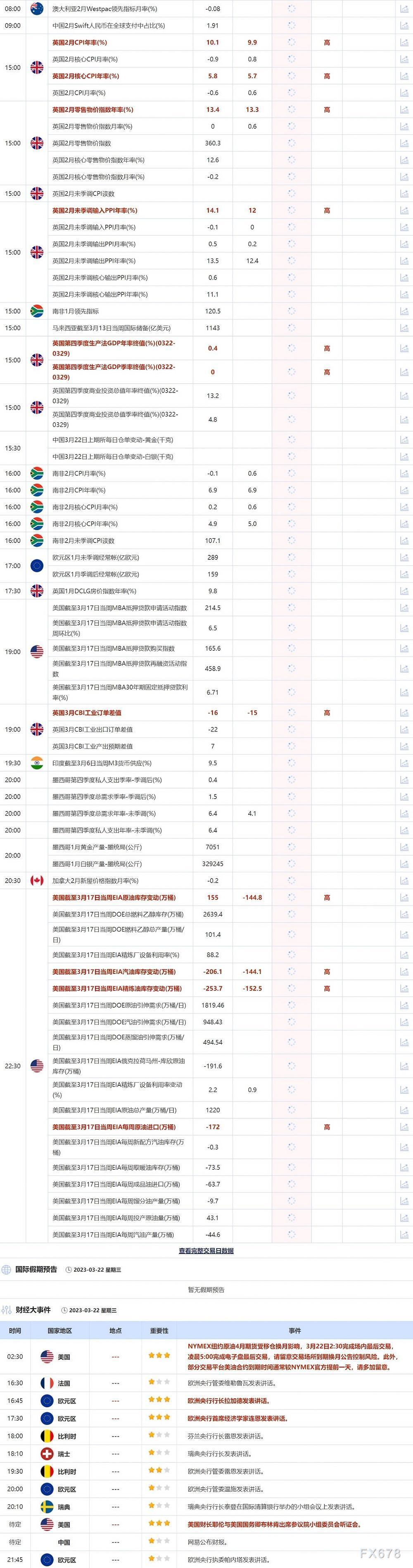 3月22日重点数据和大事件前瞻