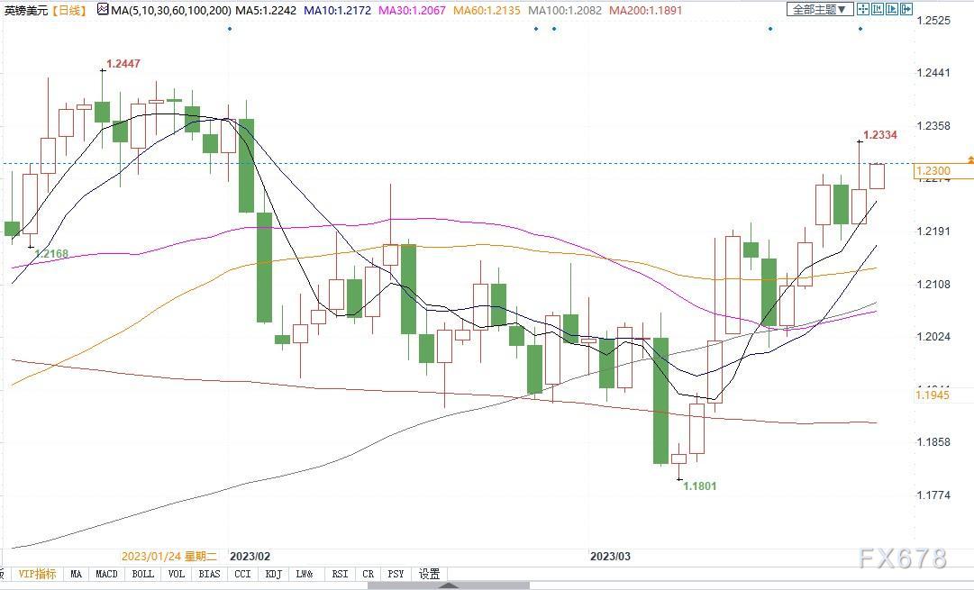 北京时间3月23日10:26,英镑兑美元报1.2300/02