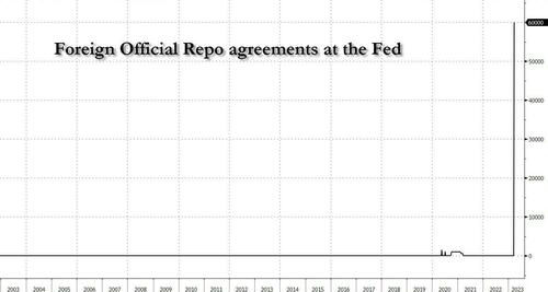 当然,过去一周美联储资产负债表扩张背后的“大头”,或许还要数外国官方的回购需求。数据显示,在3月22日当周外国官方回购迅猛提升,达到了创纪录的600亿美元,这意味着海外对美元的争夺仍在进行,同时也确实有人亟需获得美元。