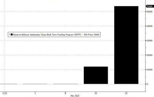 尽管贴现窗口的用量减少,但美联储全新的银行定期融资计划(BTFP)的使用量则增加了426亿美元,至537亿美元,几乎抵消了前者的降幅。在硅谷银行和签名银行倒闭后,美联储宣布推出了该融资计划,BTFP于3月12日正式开放。