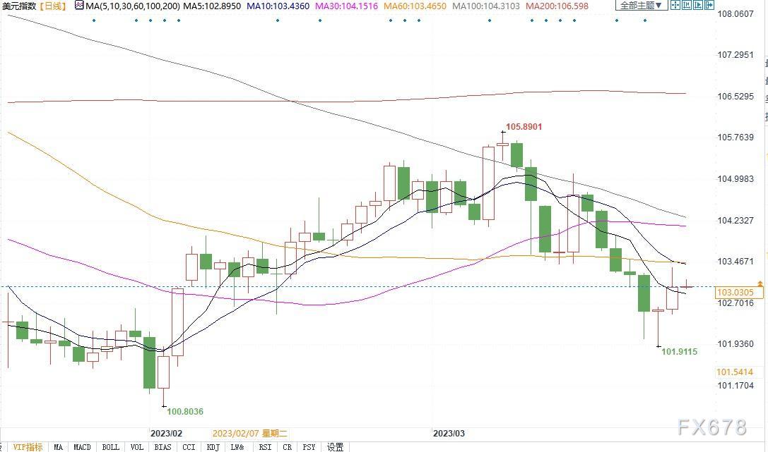 北京时间3月27日11:25,美元指数报103.03