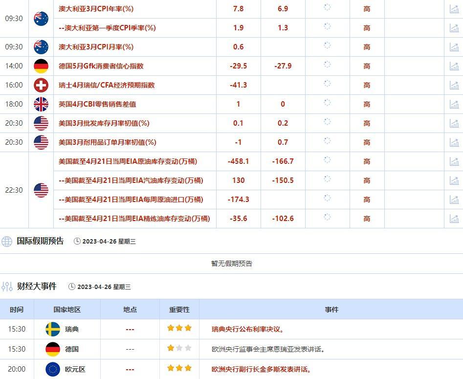 欧洲央行消息人士表示,目前做得太少的风险仍然大于做得太多的风险,但欧洲央行5月更有可能加息25个基点,而不是50个基点(市场目前认为欧洲央行5月加息25个基点的可能性为70%)。不过这将取决于4月份欧元区的通胀数据是否会出现相当负面的意外。欧元区主要国家4月CPI初值将于本周五公布、欧元区4月CPI数据将于下周二公布,这将在很大程度上为欧洲央行5月的决策提供参考。