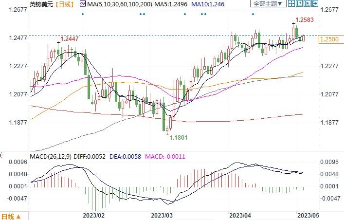北京时间5月3日14:57,英镑兑美元报1.2499/2500
