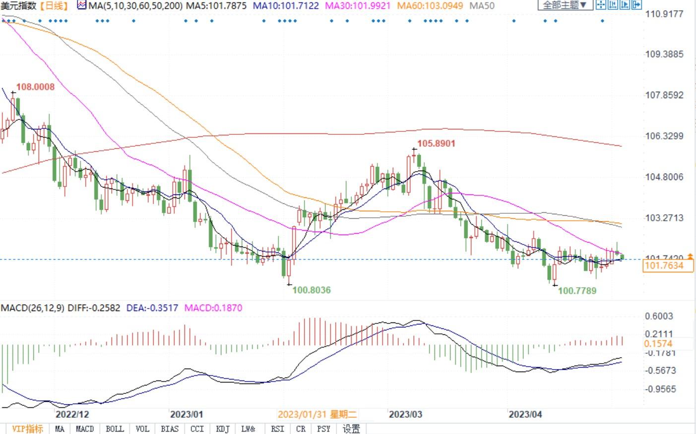 北京时间5月3日9:45,美元指数报101.77