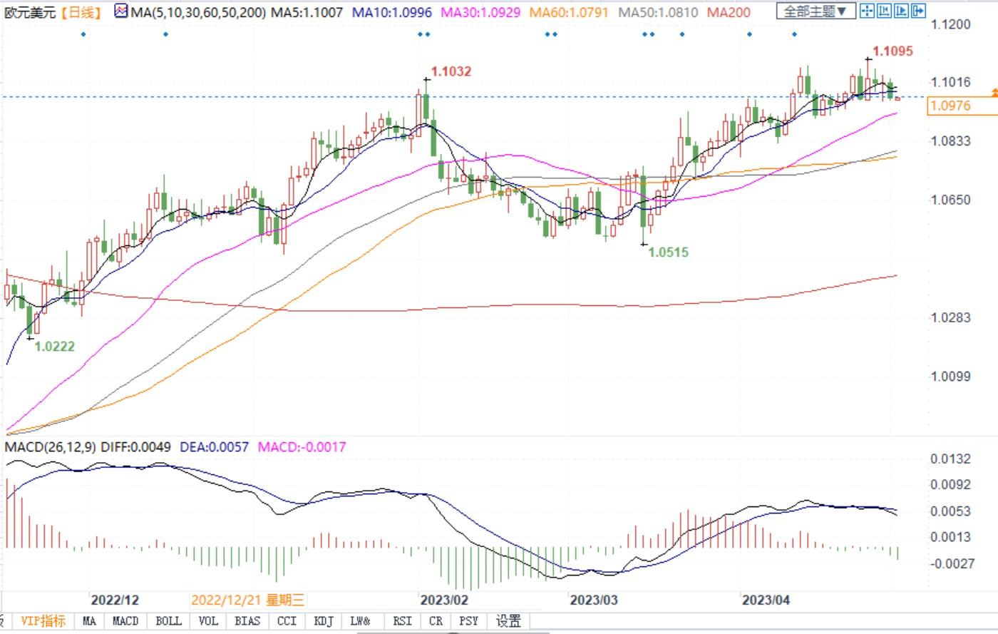 北京时间5月2日9:00,欧元兑美元报1.0977/78