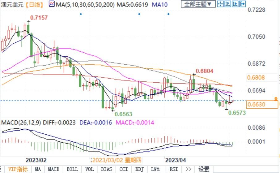 北京时间5月2日8:20,澳元兑美元报0.6631/32