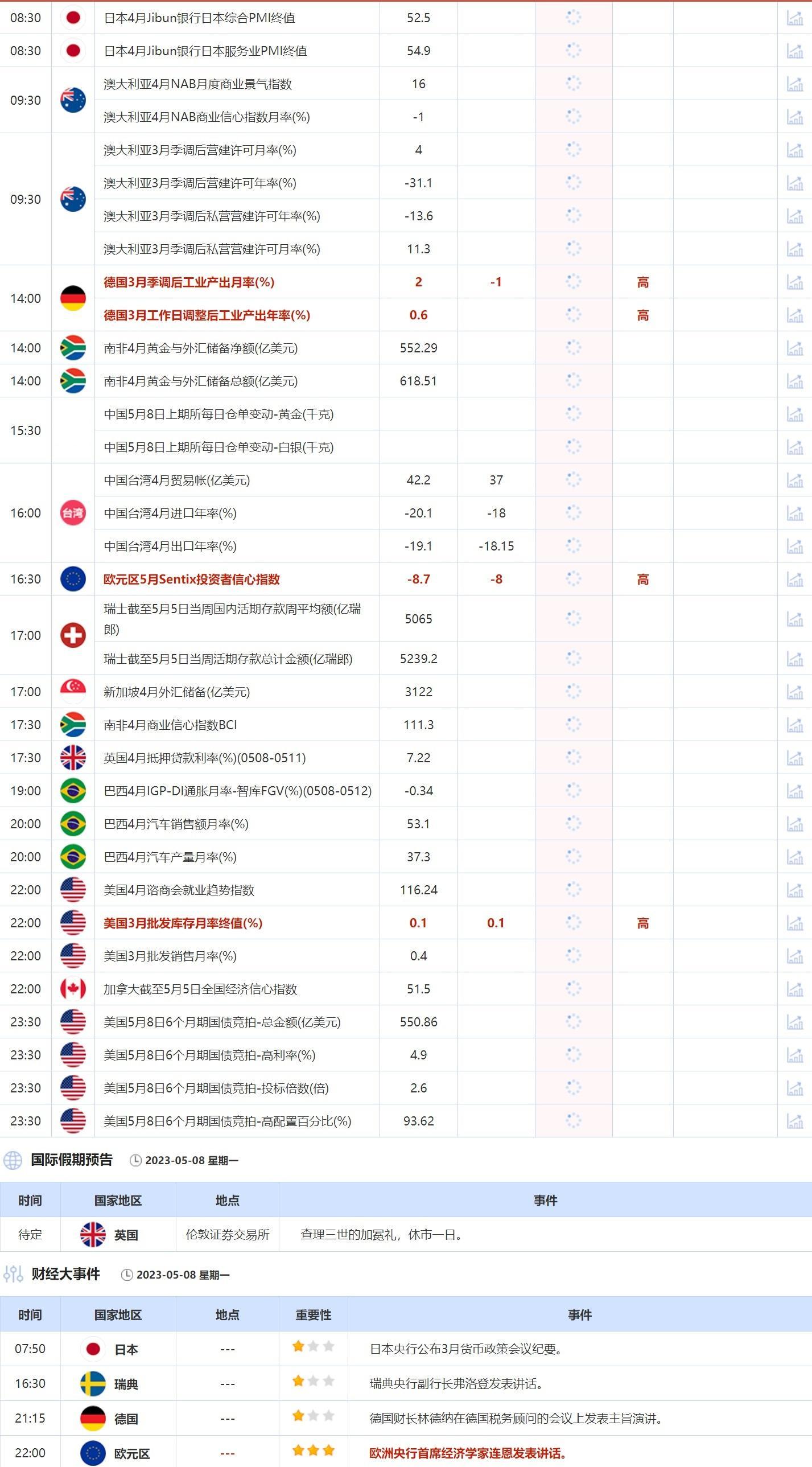 5月8日重要经济数据和风险事件前瞻