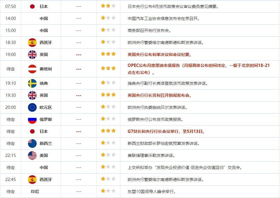 5月11日重点数据和大事件前瞻