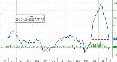美国劳工统计局周四公布的数据显示,4月份最终需求生产者价格指数(PPI)同比上涨2.3%,为2021年初以来的最小涨幅。该指标在3月上涨了2.7%。