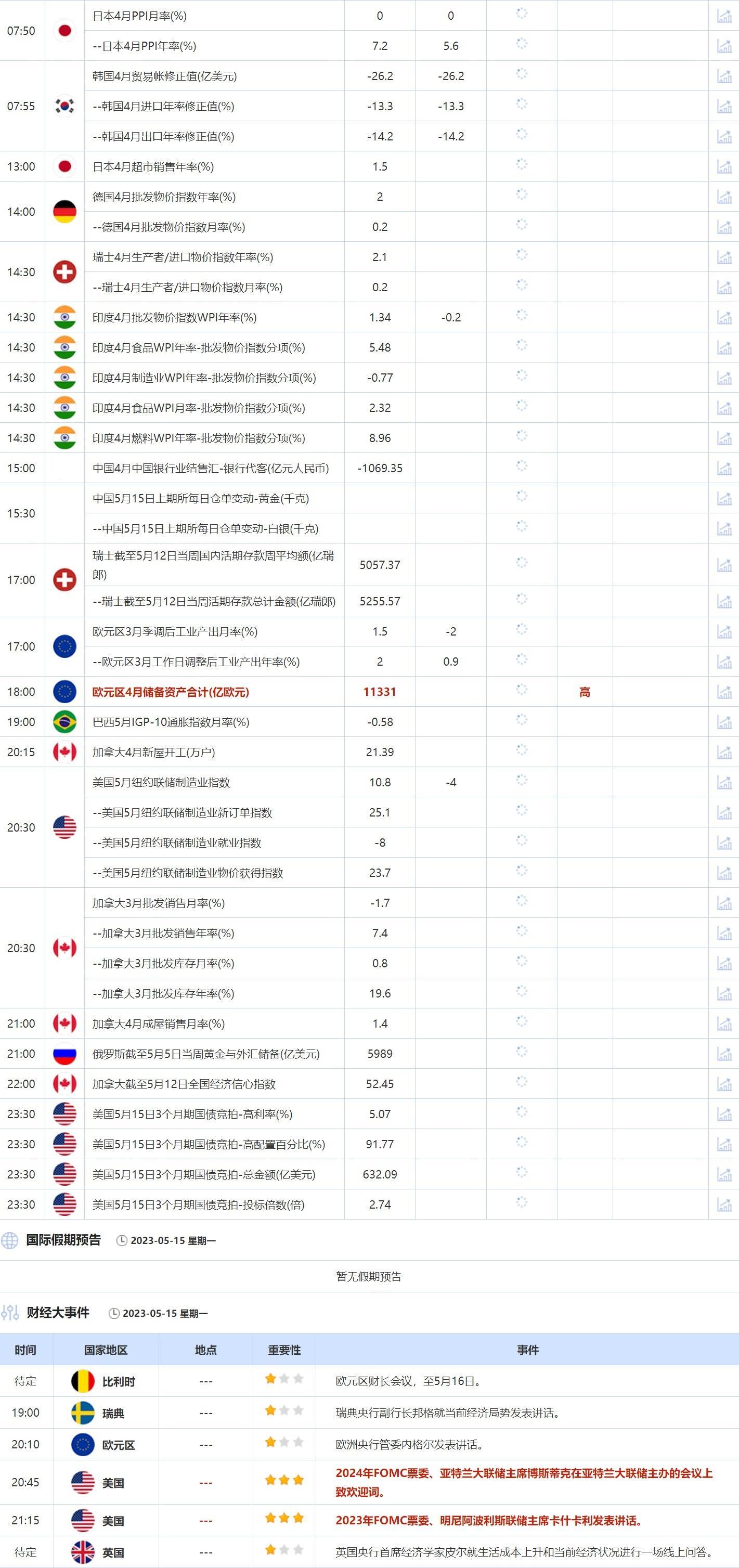 5月15日重点数据和大事件前瞻