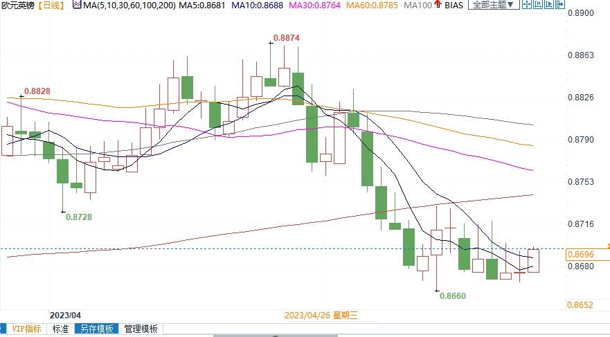 北京时间5月22日15:30,欧元兑英镑报0.8696