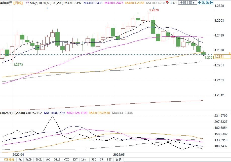 “英镑兑美元最初反弹至1.2470的高点,然后大幅回落至1.2370。我们预测英镑未来将继续走低,近期将稳定在100日均线附近,或许会出现更大幅度的下跌。”