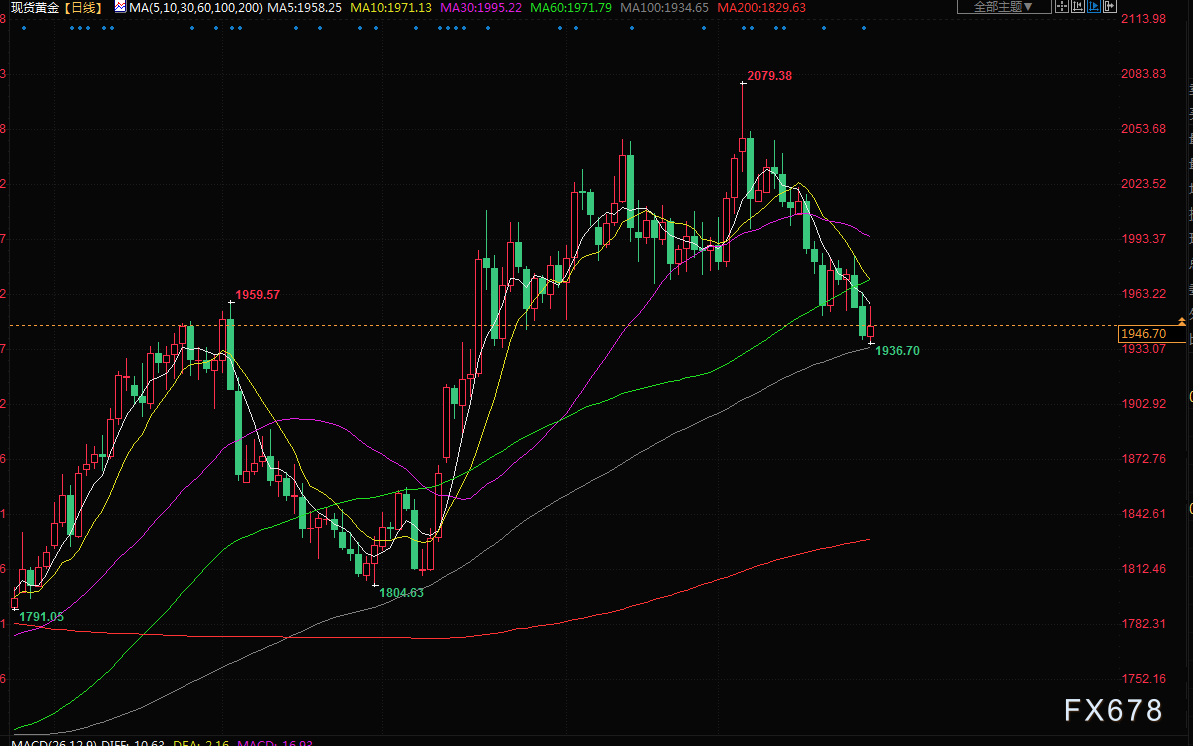 黄金在周五回吐了一些涨幅,并势将连续第三周下跌,因可能在最后一刻达成债务上限协议,以及美国通胀指数比预期的要高。白宫和国会共和党人旨在为提高债务上限两年的协议做最后的磋商。黄金在亚洲交易时段触及两个月低点1936.59美元,本周将下跌1.7%。
