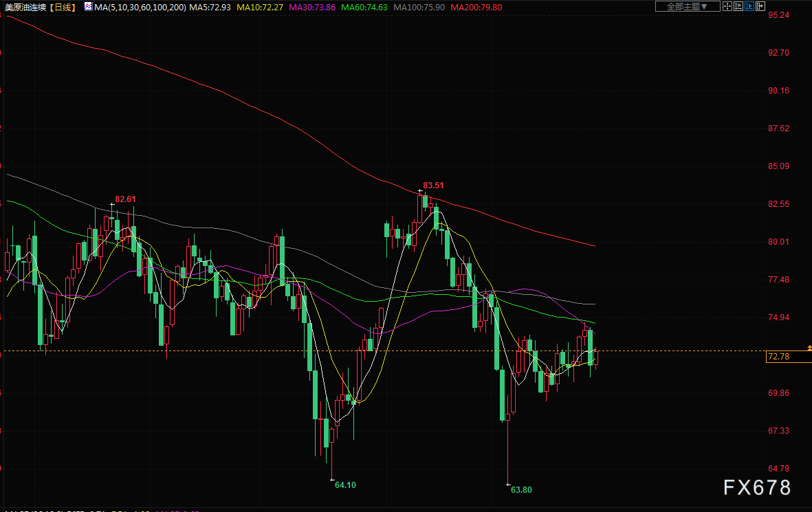 商品收盘情况:布伦特原油期货收高0.9%,报每桶76.95美元。美国原油期货收涨1.2%,报每桶72.67美元。美国期金基本持平于1944.30美元。