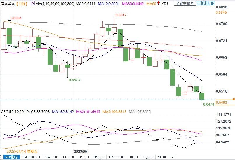 北京时间5月31日16:23,澳元兑美元报0.6484/85