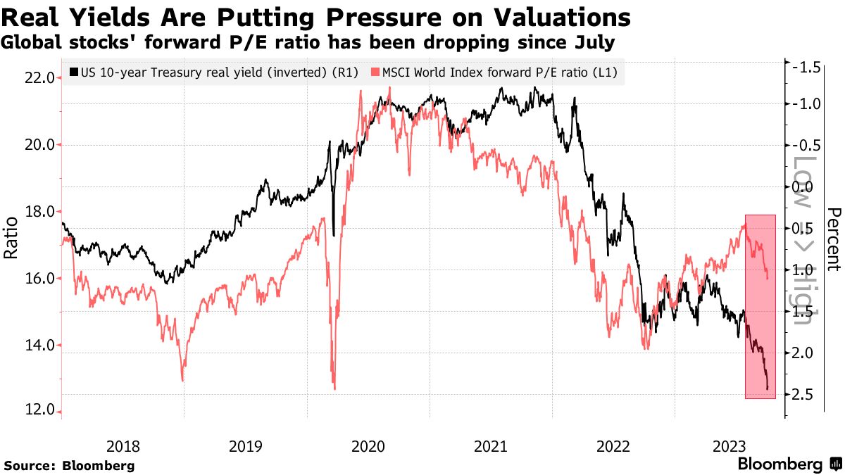 拒绝屈服于2007年以来最高美债收益率的美股等全球股市如今面临着新的考验:第三季度业绩将揭示随着美联储将基准利率提升至22年来的高点——5.25%-5.5%,借贷成本不断上行对企业利润的影响有多大,以及它们将对推动美股步入牛市的主力军——大型科技股高企的估值水平产生何种程度的影响。